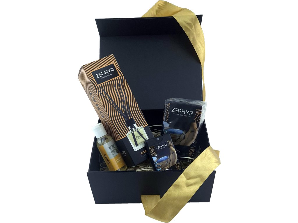 Obdarujte své blízké luxusní dárkovou sadou ZEPHYR CORAL, která propojuje vůně pro domov, auto i prádlo. Tato sada zahrnuje: